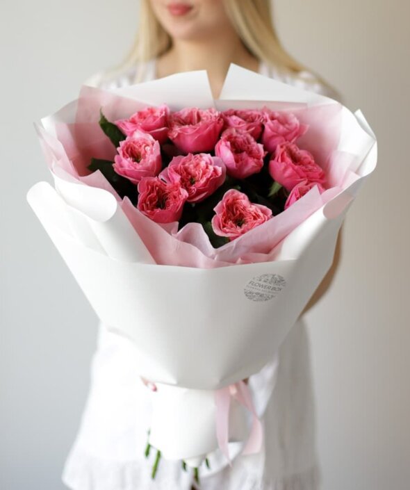 Букет пионовидных роз в нежном оформлении (11 шт) №1713